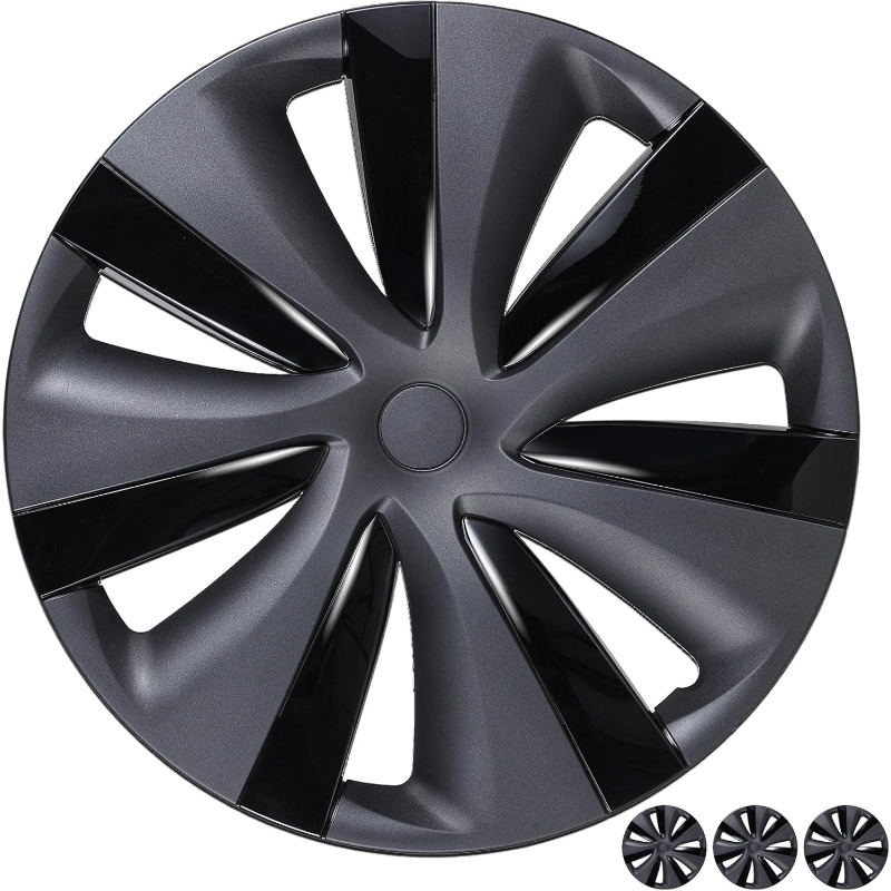 19 Inch Wheel Covers for Model Y 20212024 4 Pcs Matte Black Wheel Cover HubCaps Compatible with Model Y 20012004 Matte Black ABS Hubcaps Cyclone Turbine Style