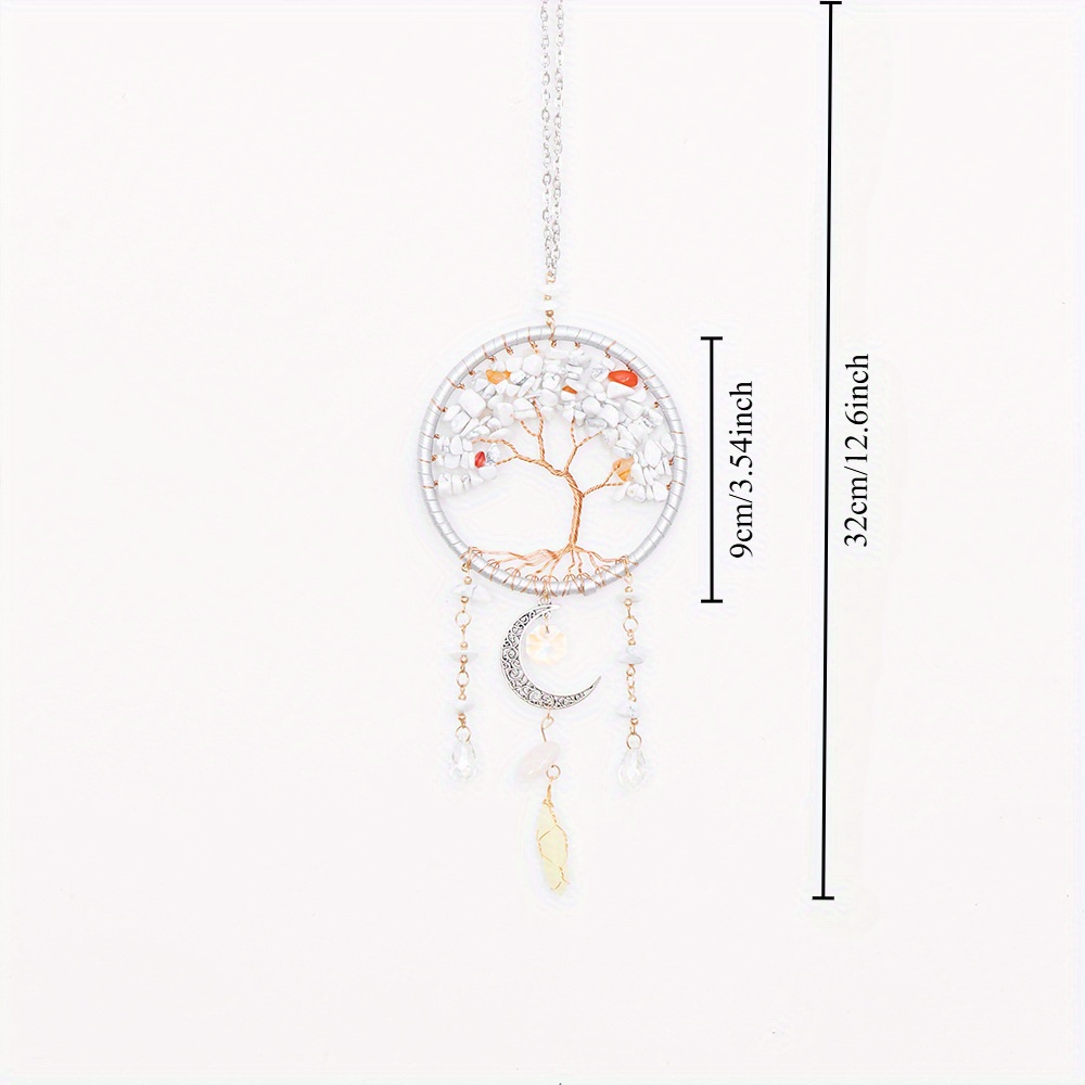 1pc Tree of Life White Stone Hanging Ornament with Moon and Crescent Charms, Energy Healing Car Pendant, Rearview Mirror Decor, Home & Window Decoration, Christmas Gift