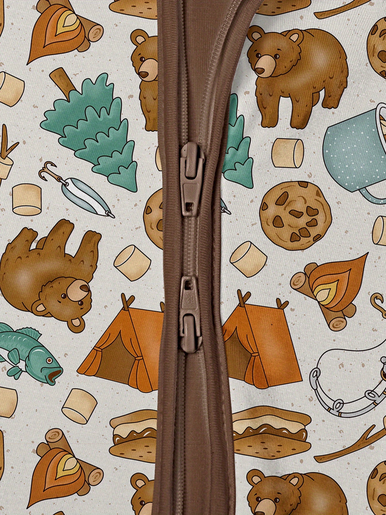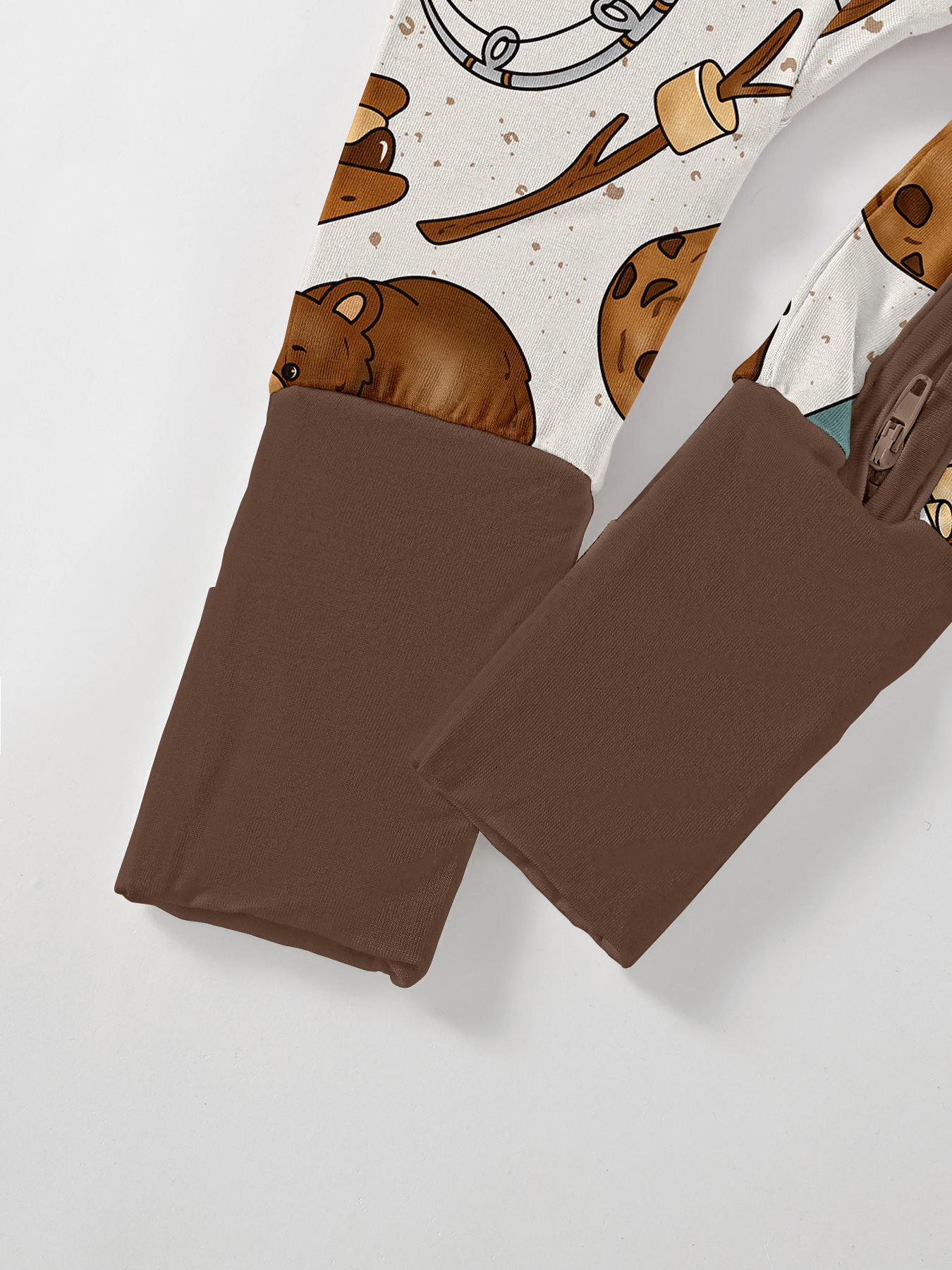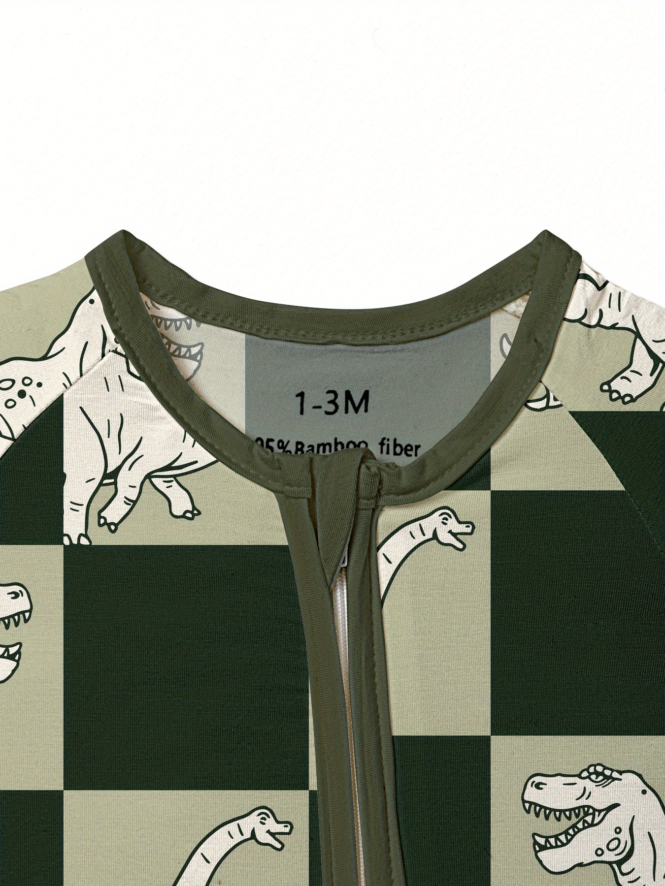 2pcs Bamboo Fiber baby onesies with dinosaur & big brown bear prints, double-sided zippers and matching pants - casual, all-season, machine washable - cute baby designs for babies, Bamboo Fiber baby clothes, great for the outdoors