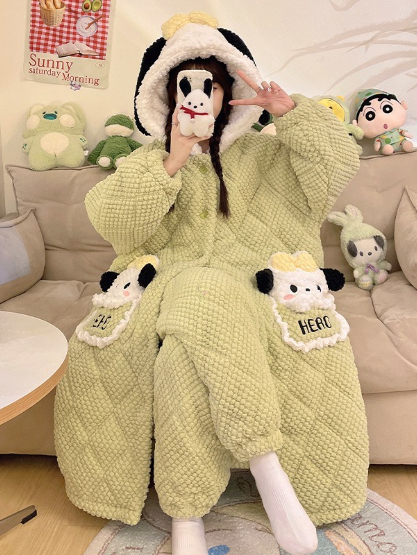 Authorized Ha Biao Dog Sleepwear Three layer Thickened Melody Sleepwear Princess Home Clothes Winter Edition, for Teenager, Cozy Loungewear, Party Sleepwear, Vneck Design, Comfortable Fabric, Soft Material, Winter Pajamas