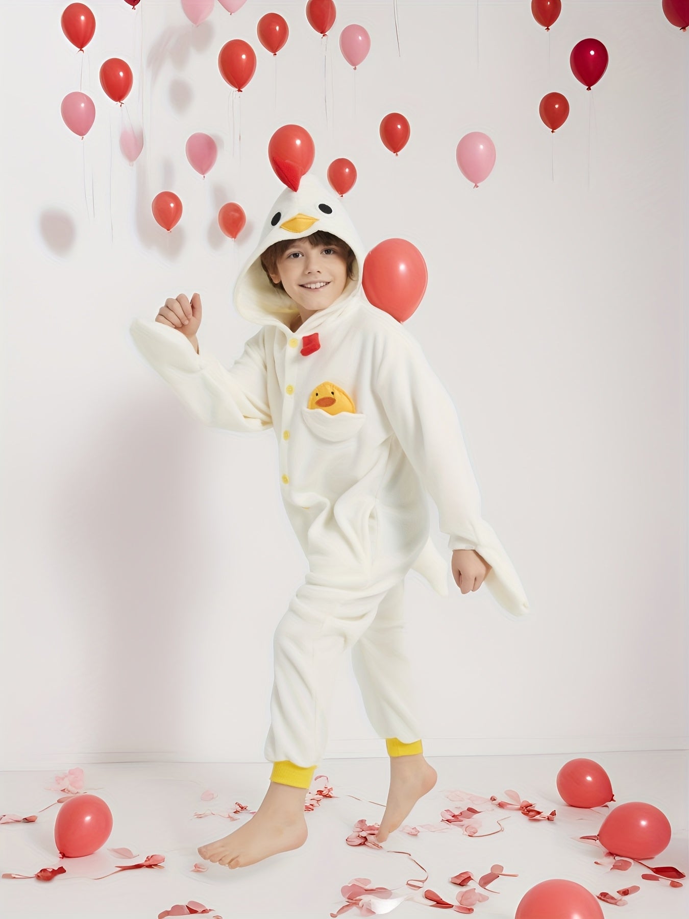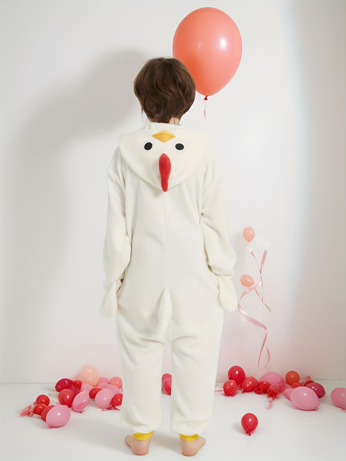 Boys' Rooster Pajamas - Hooded Long Sleeve Thick Fleece-Lined Winter Sleepwear with Details, Loose Fit Machine Washable Youngsters Party & Home Clothing for Autumn\u002FWinter, Boy Christmas Pajamas, Cozy Loungewear, Playful Design, Fleecelined Fabric
